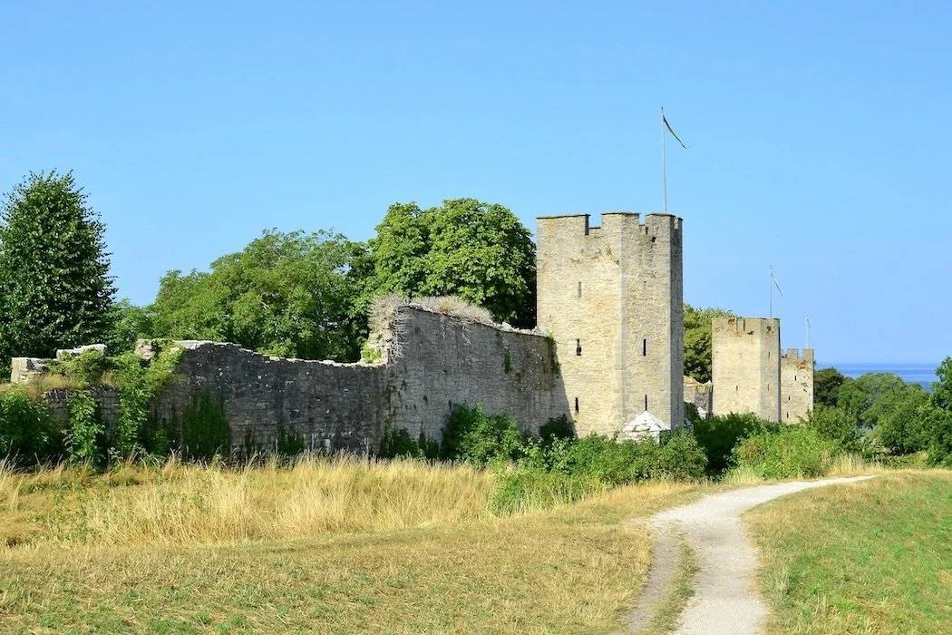Steep limestone slopes surround the natural harbor around which the town evolved. Yet, ramparts to the north, east, and south were deemed necessary to protect against foreign and Swedish assailants as Visby became an important trading hub in the Baltic. Due to its association with the Hanseatic League, the town flourished as evidenced by 200 old warehouses and merchant quarters that remain in use today as homes, hotels, and more. The medieval fortifications are nothing less than amazing. Constructed in the 13th and 14th centuries, the town wall is 3.4 km (2 mi.) long, circumscribing the entire inner city. It is worth a walk on the path around the ramparts to appreciate the height and massiveness of the stone structure that encompasses 27 ground towers and nine hanging saddle towers.