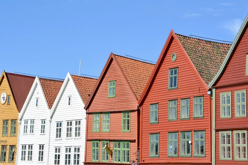 According to tradition, the city was founded in 1070 by King Olav Kyrre and named Bjørgvin, meaning “the green meadow among the mountains”. Though trading from the shores of the fjord probably began in the early 1000s, Bergen’s old Hanseatic wharf is the site of the first buildings in the city. The Hanseatic League established an office there in 1350 acquiring ownership of Bryggen (The Dock) to control the trade in stockfish, or salt cod, throughout Europe. The original wooden structures were ravaged by fire several times over the centuries, yet the colorful commercial buildings have been rebuilt, as they were before the last great fire of 1702, using original methods and plans. Narrow allies separate the two- and three-story buildings with small stone stock rooms that protected valuable wares from fire, while exterior staircases connect them. Nowadays, the buildings house crafters and artists’ workshops as well as the Hanseatic Museum and Schøstuene, where German tradesmen lived and worked.