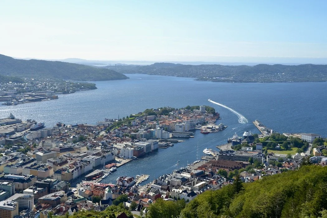 Bergen is surrounded by mountains, so good weather calls for a funicular ride up to Mount Fløyen where an overlook terrace affords stunning views across the city and the surrounding fjords. From here, numerous hiking routes begin, longer or shorter distances, and for varying levels of experience. They lead through woodland, around lakes, and as far as 15 km (9.3 miles) to Mount Ulriken, Bergen’s highest point. A cable car takes 5 minutes down to the express bus stop back to the port. For Norwegians, getting out on the water on nice days is a natural tendency, and for visitors, fjord tours leaving from the Fish Market dock range from three hours near Bergen to whole-day trips.