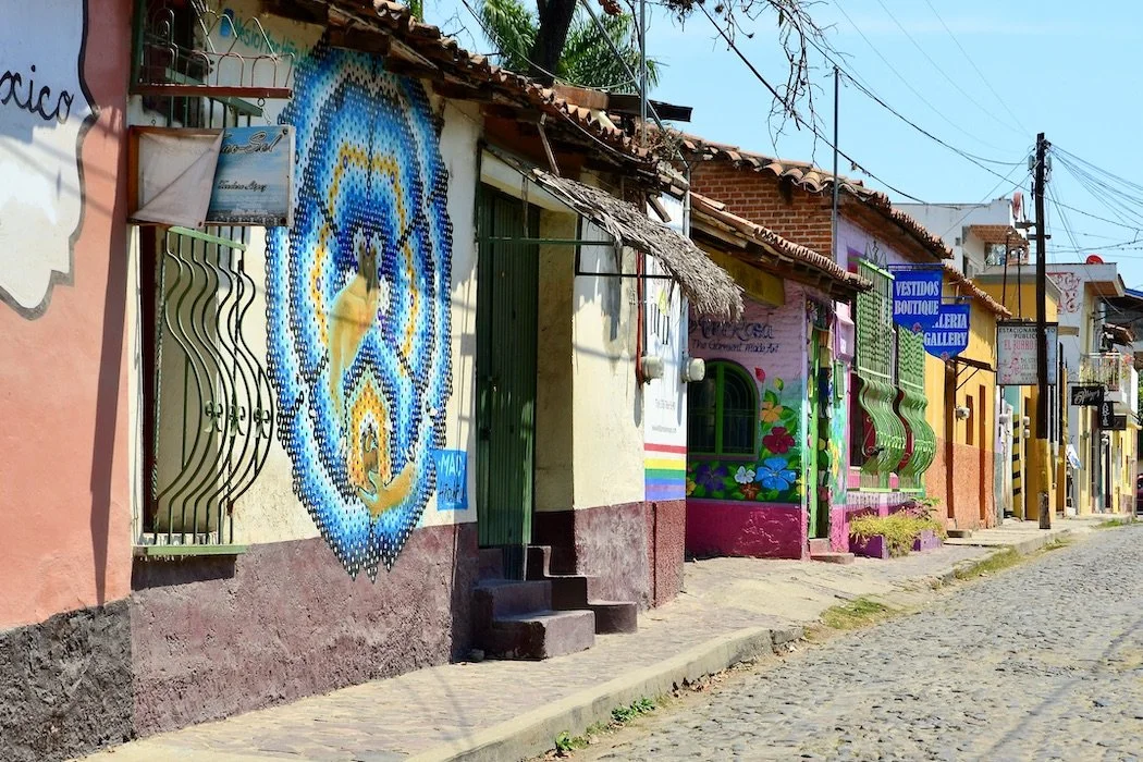 The extremely colorful village of Ajijic has attracted foreign artists and writers since the 1890s. One of the oldest villages in western Mexico, whose name means “place where the water bubbles up”, it was founded in 1531 precisely because it was a good source of water. Still compact and idyllic with cobblestone streets, the village is a relaxing, friendly mix of locals and ex-pats. Beautifully painted murals adorn almost every house wall with designs ranging from abstract to historical and whimsical. Small boutiques feature an amazing variety of handicrafts including fantastical beaded animal figures, decorated pottery, sweet or scary-looking dolls, jewelry of traditional designs, and embroidered clothing, all a riot of color. Under the gazebo at the shady main plaza, live music enlivens village life while along the beautifully landscaped boardwalk, or Malecón, benches beneath the palm and flowering jacaranda trees provide a place to linger along the lake, and children play or skateboard.