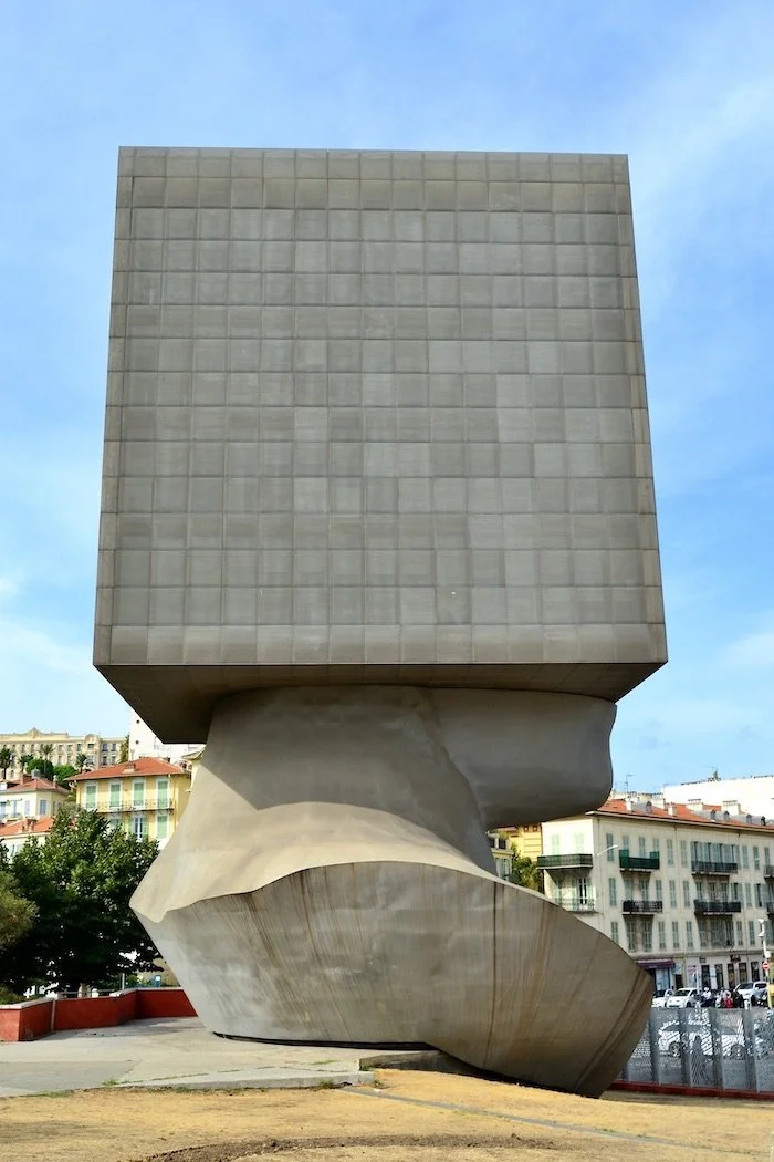 At the edge of Old Nice, the Place Garibaldi serves as a crossroads between the old and the modern city. On the square, the neoclassical Chapelle du Sainte-Sépulre-des-Péntitents-Bleus features cannonballs over the lower doorways that were fired by the Turkish fleet during the siege of Nice in 1543. Beyond Nice’s main square, the Place Masséna, La Tete Carrée sits high in a garden behind the Museum of Modern Art. Designed by French artist Sacha Sosno, the striking cube-shaped structure balancing on a neck and chin is Nice’s three-story central library.