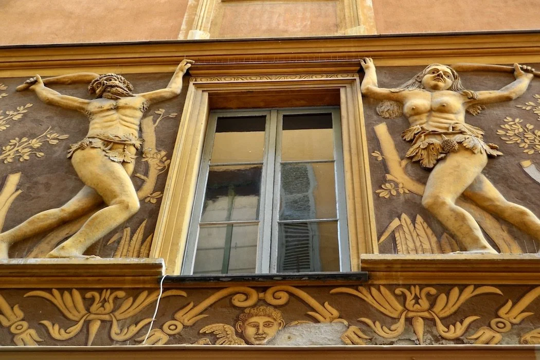 Often missed in the heart of the old town in a narrow street, the 1584 Adam & Eve House is so-called because of a second-story bas-relief depicting the pair in the Garden of Eden. Nearby, duck into the small, rather dark Baroque Church of Santa Rita. Dating to the 1600s, the six side chapels, lovely, frescoed ceilings, and ornate carvings brought calm into the bustle of a medieval town. Just around the corner from the church, the Loge Communale protects ancient socca, or stone fragments, monuments, and epitaphs dating to the Roman Era, behind a metal fence. This was once part of a medieval city lodge, comparable to a Roman Forum or regular marketplace and public debate space.