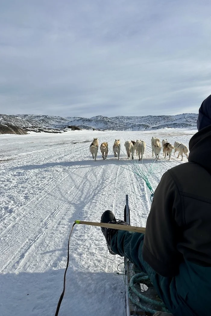 Thousands of Greenlandic sled dogs live in colonies at the town’s edge, where older dogs are chained, and pups up to 5 months old frolic freely. The thousand-year-old traditional transport mode hasn’t changed in technology or appearance. No other dogs are permitted, and Greenlandic sled dogs must be held north of the Polar Circle; once a dog has been south, it cannot return. It takes 7-10 dogs aged 2-7 to pull a sled with 300 kg (661 lbs.) of halibut (or tourists) for hours. Even as climate change is reducing travel over the ice by dog sled, the ride is exhilarating.