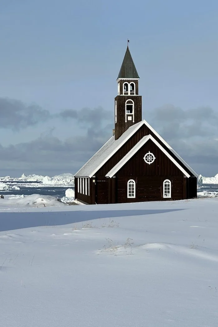 In the traditional town, brightly painted wooden houses sit between snow-covered peaks and the sea, especially in the Illumiut neighborhood. The two-story birthplace of polar explorer Knud Rasmussen, whose father was stationed here as a pastor from 1873-1895, is now the historical museum. Schooled in Denmark, Rasmussen returned to lead seven Thule polar mapping and cultural expeditions, wishing his work to lay a foundation for respecting the Greenlandic way of life. Next door, the wooden Zions Church is where Rasmussen’s father preached.