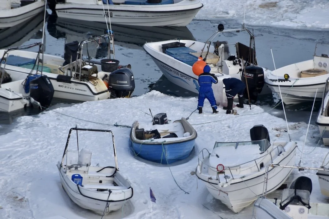 At the harbor, fishing boats head in and out at all times of day to catch halibut, which along with shrimping, remains a staple of the local economy. Fisherman ready their boats regardless of weather, even as smaller craft sit on the inlet’s thick ice. From the same harbor, excursion boats sail out among giant icebergs alongside Sermeq Kujalleq, one of the world’s fastest and most active glaciers, for an unbeatable experience.