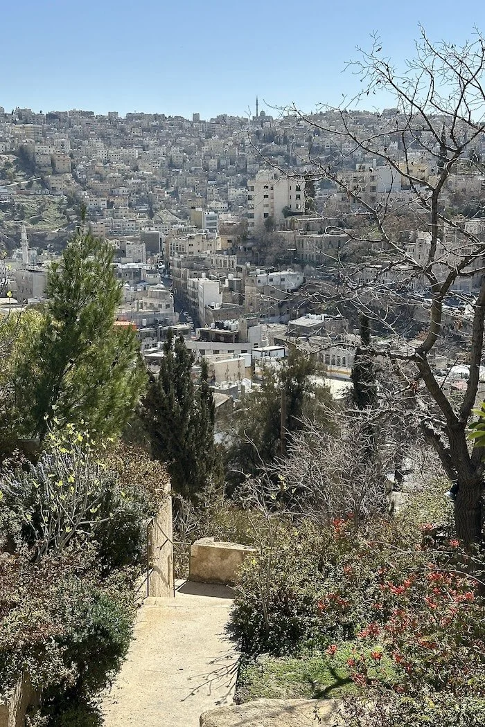Climbing to the top of the Roman Amphitheater to get a sense of its commanding size and for the view over modern Amman.