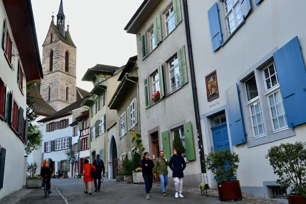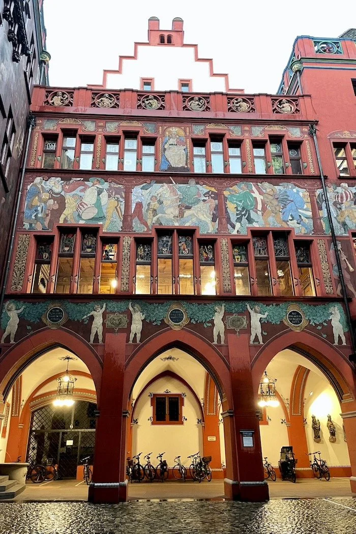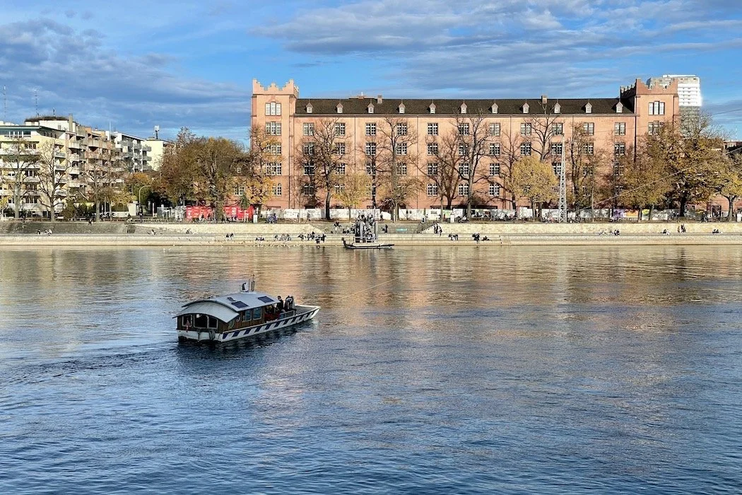 The Swiss city of Basel isn’t the county’s most famous or most visited even though it has been home to many eminent citizens and currently claims renowned museums as well as prosperous pharma and chemicals industries. Located at Switzerland’s northwestern edge, called the three-country corner bordering France and Germany where the Rhein takes a 90-degree northward turn, the city is an oddity: a city-state with suburbs in two other countries, an airport in France, three major train stations, and divided by the river into two sections: Grossbasel and Kleinbasel.