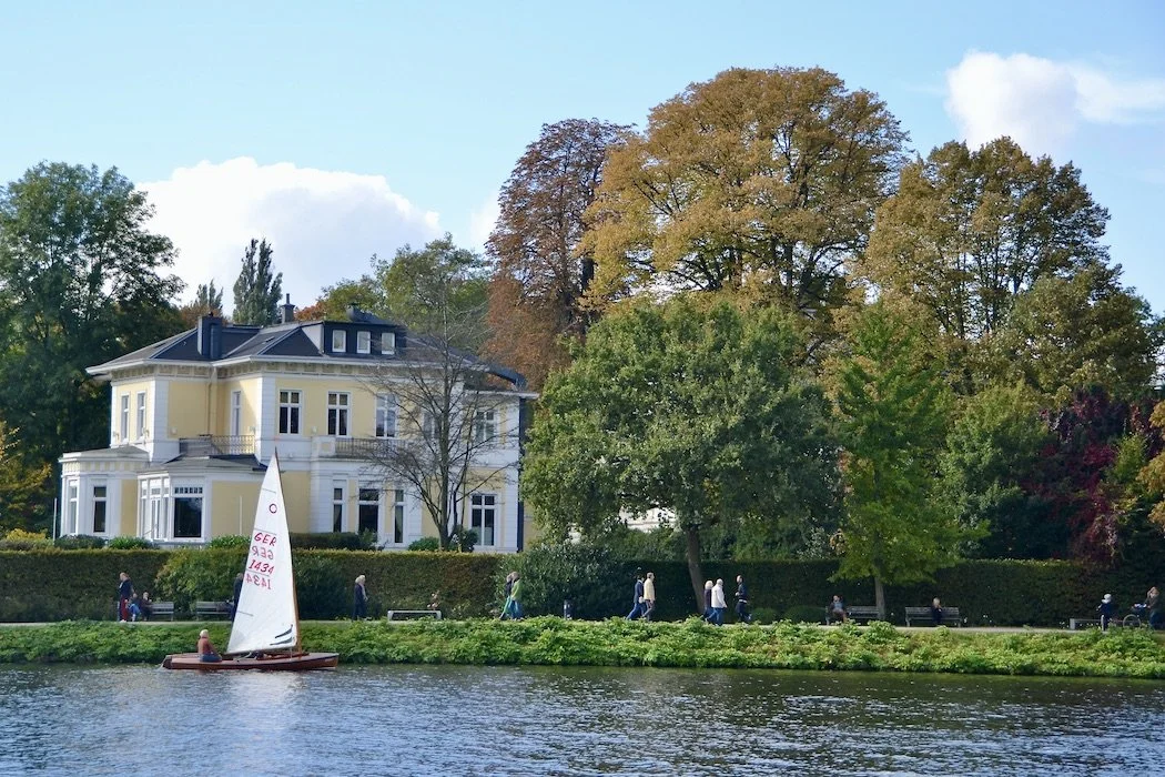 Strolling along the Innen Alster lake to soak up the Hanseatic atmosphere.