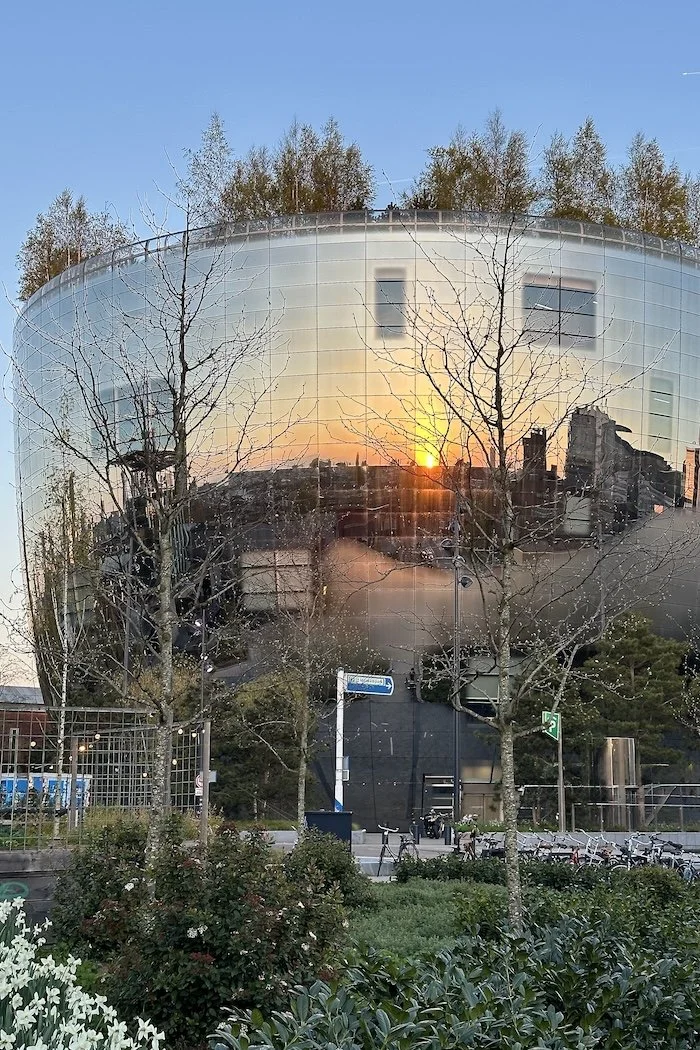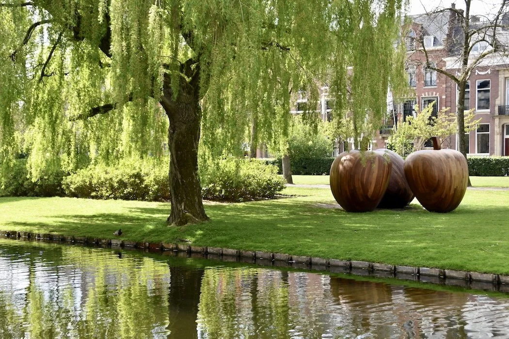 Rebuilding after near-complete destruction during WWII began in the city center on the river’s northern bank in the 1950s, deliberately making the city open and modern. Here are Europe’s first car-free shopping street Lijnbaan, the Centraal Station on Stationsplein Square, and the neighboring Groothhandelsgebow trade building. Yet northern Rotterdam retains neighborhoods of small streets lined with early 20th-century homes along quiet canals, such as Heemraadsingel. Away from the bustle, wide paths under old trees along the water flank playgrounds, picnic spots, and playful works of art like three wooden apples by Kees Franse.
