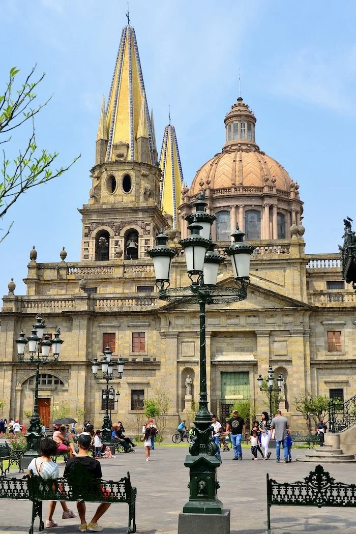 Guadalajara's bustling historic downtown is filled with public squares and parks including, of course, the Plaza de los Mariachis. In Zona Centro, a complex of four squares forms a Latin cross, in the middle of which stands the 400-year-old colonial Metropolitan Cathedral. Built in the Spanish Renaissance style with 7 altars, it survived no fewer than 7 earthquakes though the neo-gothic spires once had to be rebuilt. Each square has a distinct flavor and is frequented by locals who enjoy sitting on the benches, eating from food carts, watching children play, and listening to twittering birds or musicians. At Plaza de Armas, the elegant neo-colonial Government Palace overlooks a 19th-century French wrought-iron bandstand. The large, oblong Plaza de la Liberación hosts outdoor concerts and also Teatro Degollado, the architecturally stunning opera house which accommodates not only opera and ballet in its gilded interior but of course also Mariachi competitions. The Plaza Guadalajara features a shopping center under the fountains, and Rotonda de Los Hombres Illustres offers a tranquil spot in commemoration of Jalisco’s distinguished citizens