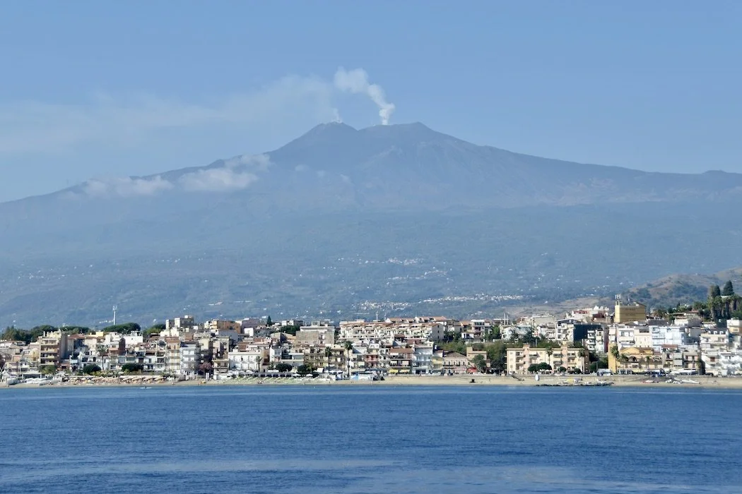 When arriving near Catania, Sicily from the Mediterranean Sea, it is impossible to overlook Mount Etna with its smoking peak. Etna’s name comes from either the Greek aitho, meaning “I burn”, or the Phoenician word attuna, meaning chimney or furnace. According to Greek and Roman mythology, the blacksmithing forges of the god Vulcan (Greek: Hephaestus) were said to be underneath. Etna is the highest volcano in Europe, reaching 3350 meters (nearly 11,000 ft) over sea level, covering approximately 1200 square km (463 sq mi). It dominates the Island of Sicily, the three surrounding seas, and Calabria on Italy’s toe, captivating scientists, and visitors as well as locals who come to ski when Etna is snow-covered in the winter.